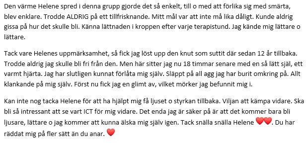 Skulle du vara intresserad av ICT Gruppterapi? Vi ses 2 timmar varannan vecka via Zoom och det är begränsat antal deltagare, ca 6-8 st. Pris per månad 2.700 kr.